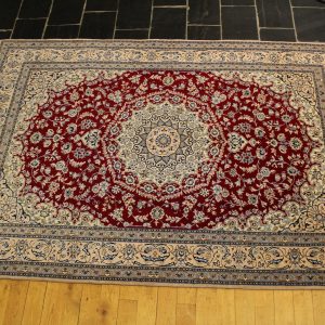 2.750,00€Alfombra Persa Nain de lana y seda, hecha a mano, y de nudo fino. Medidas: 2.45 x 1.61 m. Ubicación: Salón, Comedor