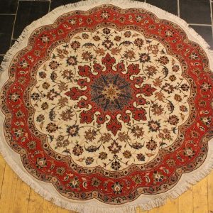 2.800,00€Alfombra Persa Tabriz hecha a mano. Medidas: 1.53m diámetro. Ubicación: Salon, Comedor, Entrada
