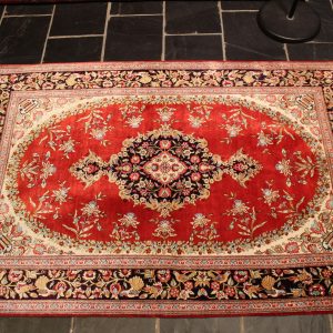 2.999,00€Alfombra Persa Ghom hecha a mano, de seda. Medidas: 1.50 x 0.99 m. Ubicación: Entrada, Habitación